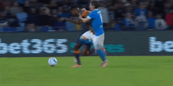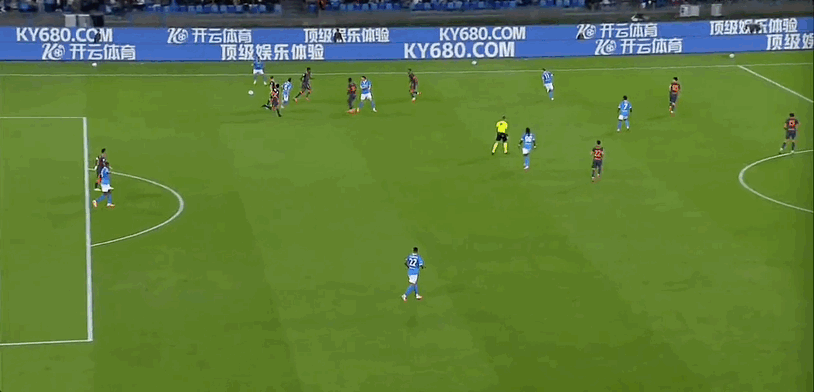 Biển cảnh báo 45+6' - Vi phạm Gilmour (Naples)