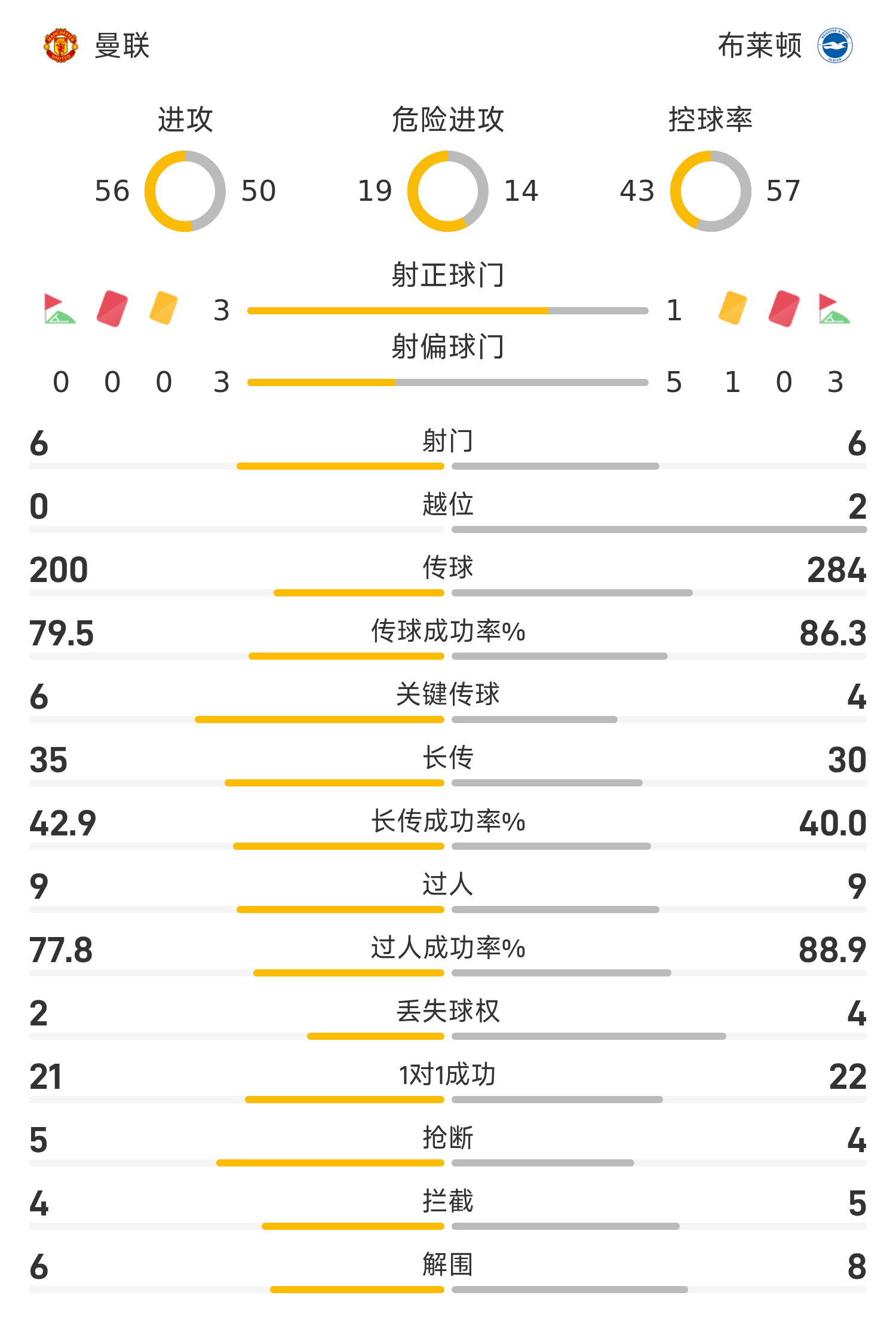 44' Mbemo chuyền bóng hỏng, Sheshko sút hỏng cú vô lê chân trái, Manchester United vẫn dẫn trước Brighton 2-0