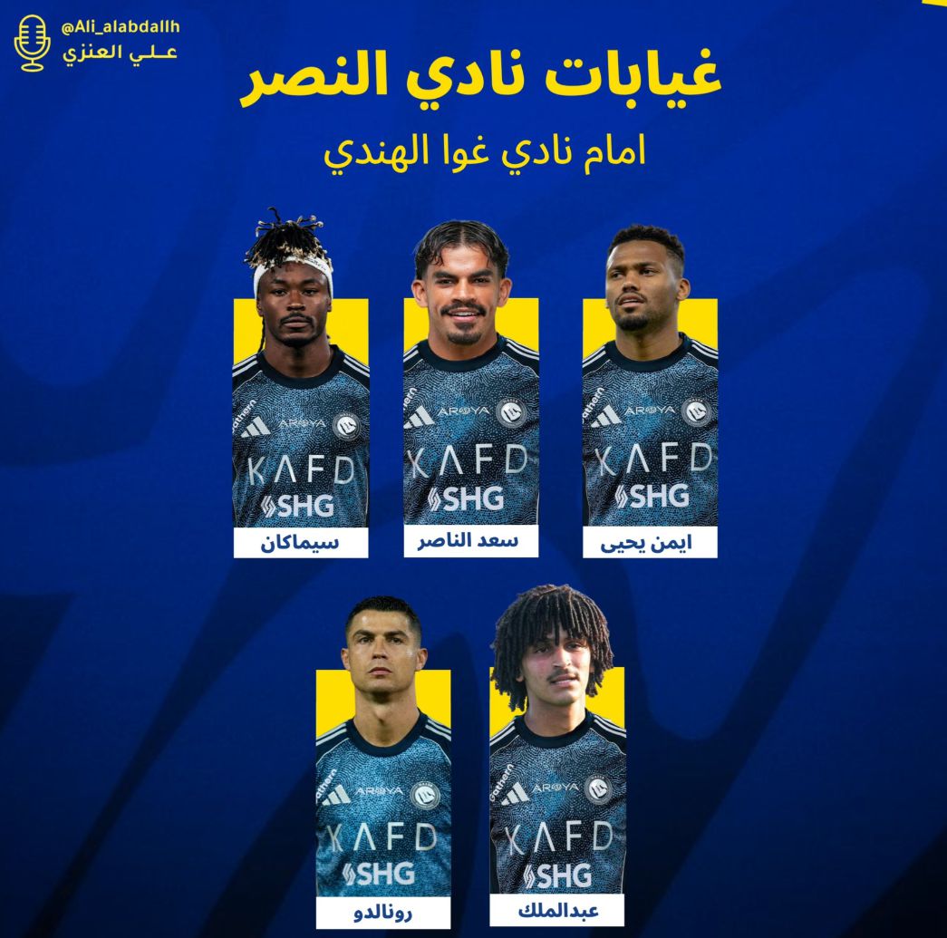 C Ronaldo nghỉ trận này, còn Simakan, Nasser và Yahya vắng mặt vì chấn thương.