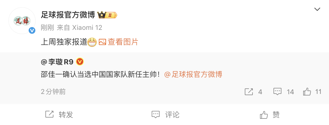 6686 Tin thể thao ngày 5 tháng 11 Theo báo cáo của "Football News", cựu đội tuyển bóng đá nam quốc gia Trung Quốc, trợ lý huấn luyện viên và hiện tại là huấn luyện viên Bờ Tây Thanh Đảo Shao Jiayi đã được xác nhận được bầu làm huấn luyện viên trưởng của đội tuyển bóng đá nam Trung Quốc.