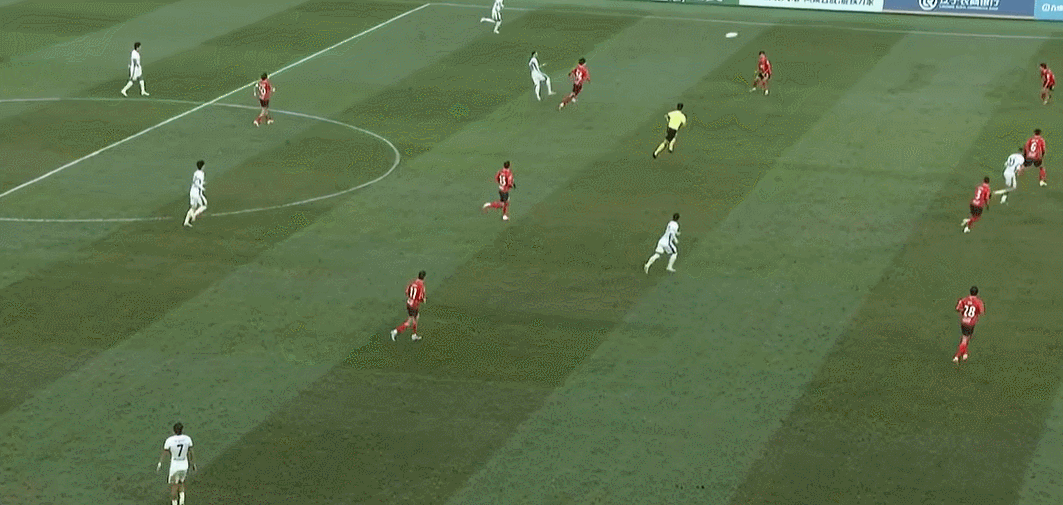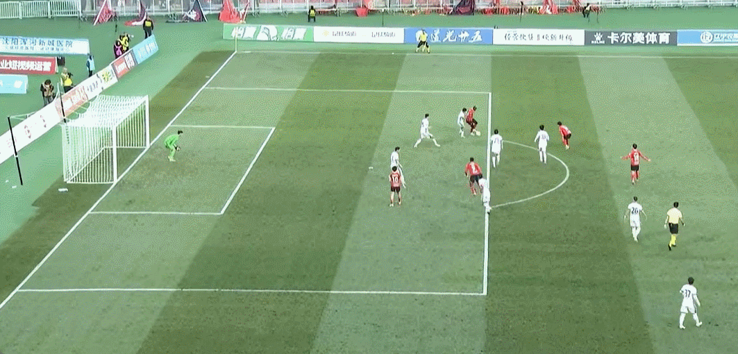 64’ Chen Binbin nhận đường chuyền ngang trong khu vực ba giây và bắt đầu quét bóng. Liu Weiguo cứu bóng ổn định