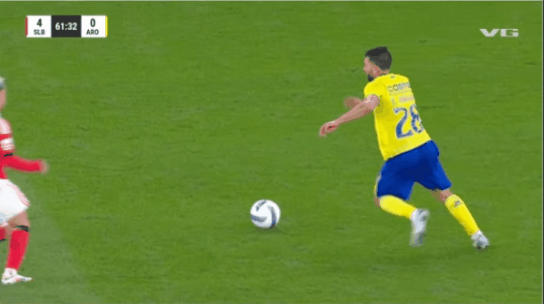 62’ biển cảnh báo vi phạm Prestiani (Benfica)