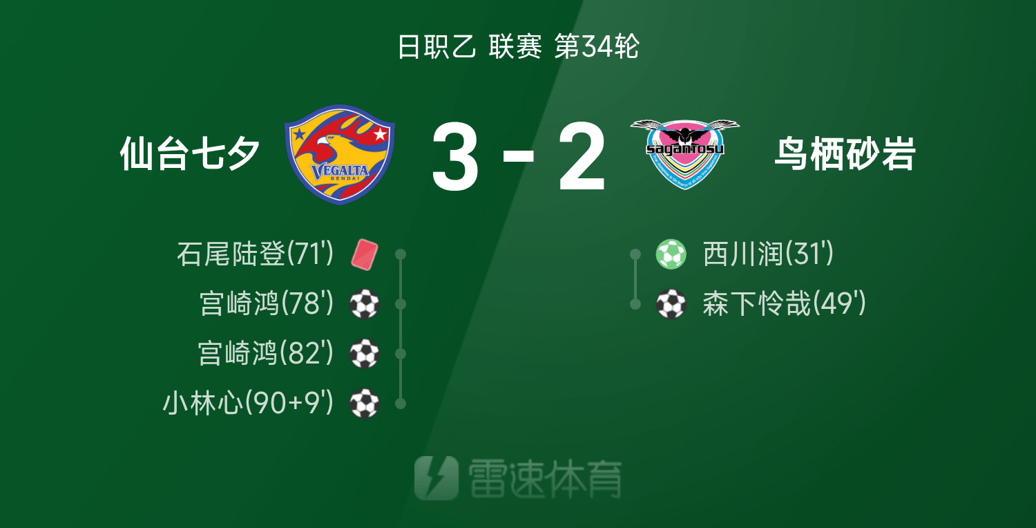 Tường thuật trận đấu Japan League B: Cú sút cuối cùng của Kobayashi ở phút bù giờ, Sendai Tanabata mười người đảo ngược Tosu Sandstone 3-2