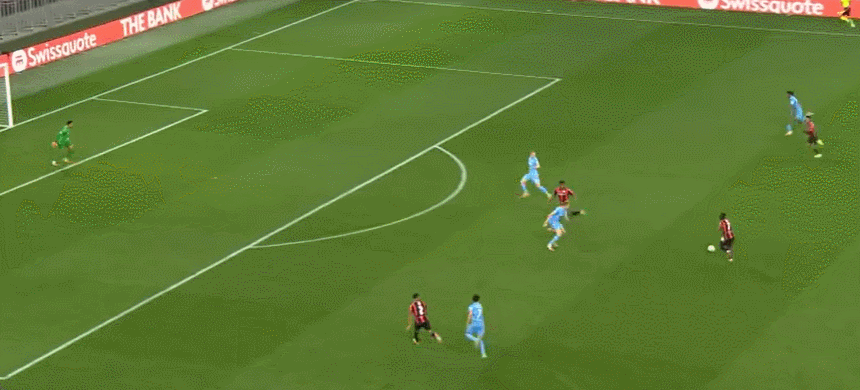88’ Sanson đưa bóng ra ngoài vòng ba giây, vượt qua hậu vệ rồi sút từ bên ngoài. Bóng đi vọt xà ngang