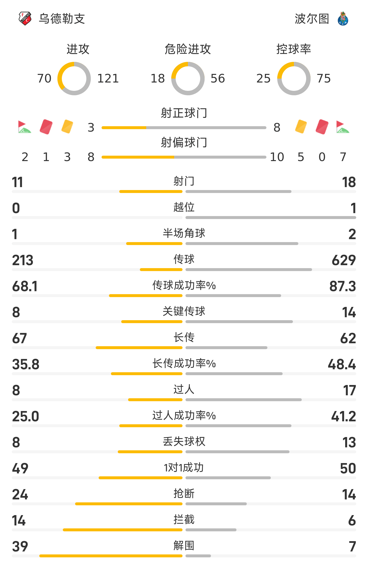 31' Pepe nhận đường chuyền bằng chân ngược từ đồng đội ở rìa khu vực ba giây rồi vô-lê đưa bóng về phía khung thành. Bóng đi chệch cột dọc và đi ra ngoài biên ngang
