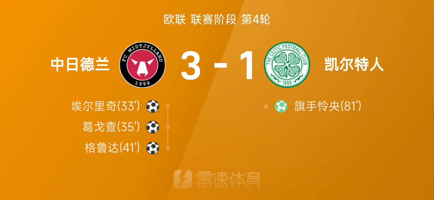 6686 Thể thao ngày 07 tháng 11 Ở vòng 4 Europa League 25/26, Midtjylland đã đánh bại Celtic với tỷ số 3-1. Cả trận, Gegocha đóng vai trò nổi bật khi đóng góp 1 cú sút và 1 đường chuyền. Gruda và Elrich ghi bàn, người cầm cờ Lianyang ghi bàn nhưng không thể cứu được thủ môn.
