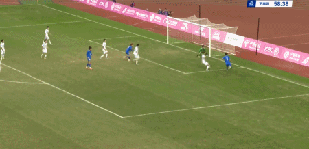 58' He Bingzhuang hỗ trợ trong vòng ba giây, Lu Junwei thực hiện cú sút, bóng bay vọt xà ngang và ra khỏi khán đài