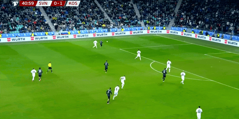 11’ Hậu vệ Kosovo phạm lỗi phá bóng, cú sút của Vipotnik đã bị cản phá