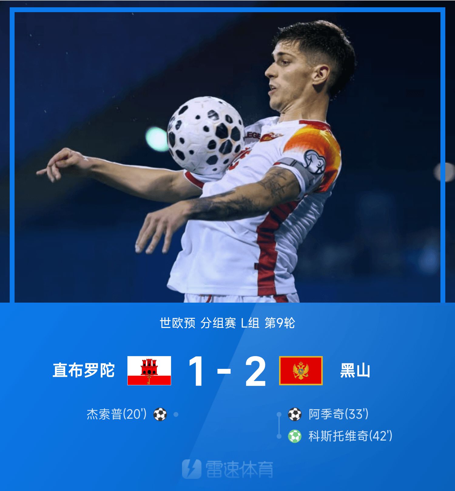 Báo cáo xem trước World Cup: Adzic đá phạt trực tiếp, Montenegro ngược dòng Gibraltar 2-1