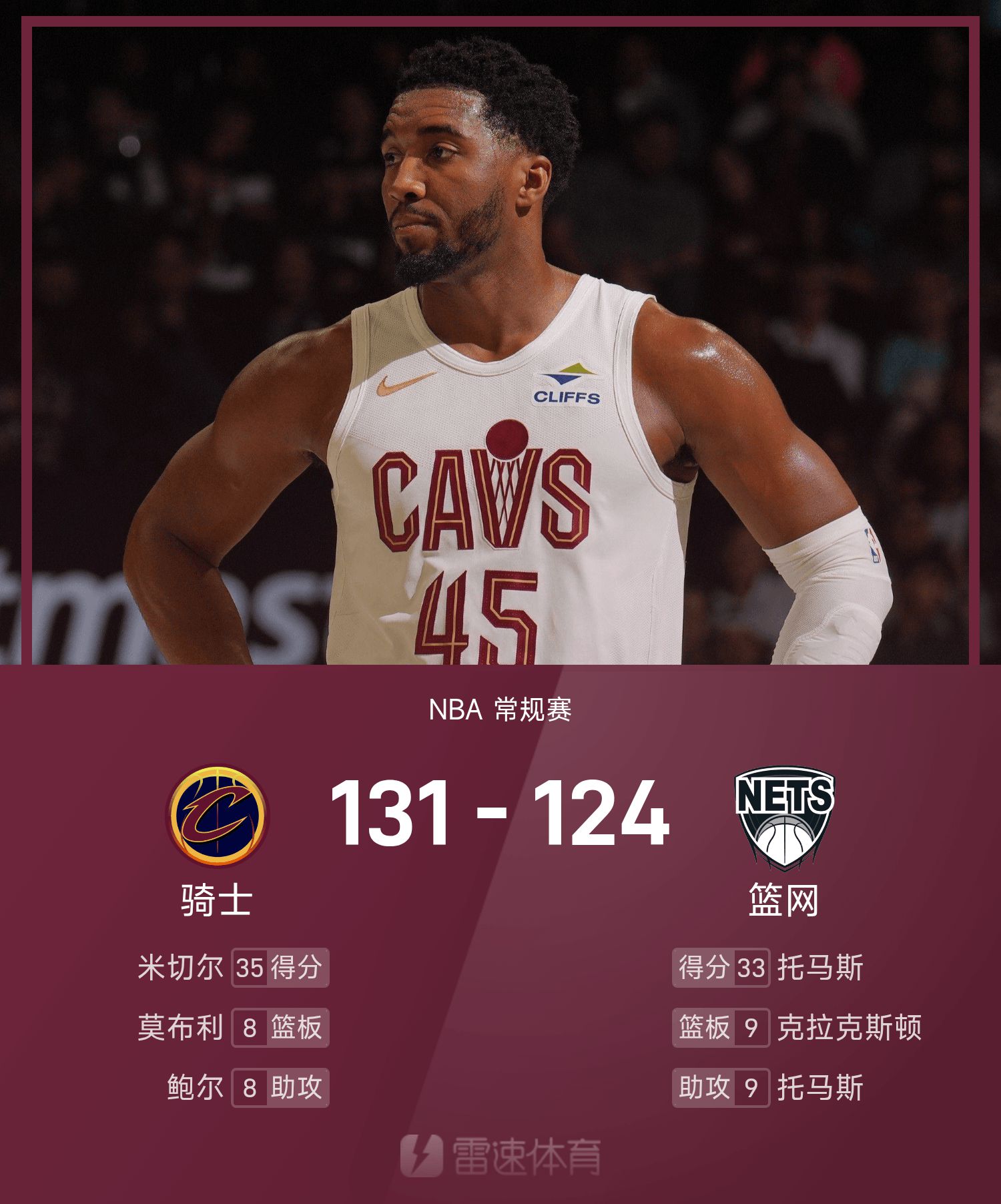 Mitchell thực hiện 10 trong số 15 cú sút và ghi được 35 điểm, 2 rebound và 5 kiến tạo.