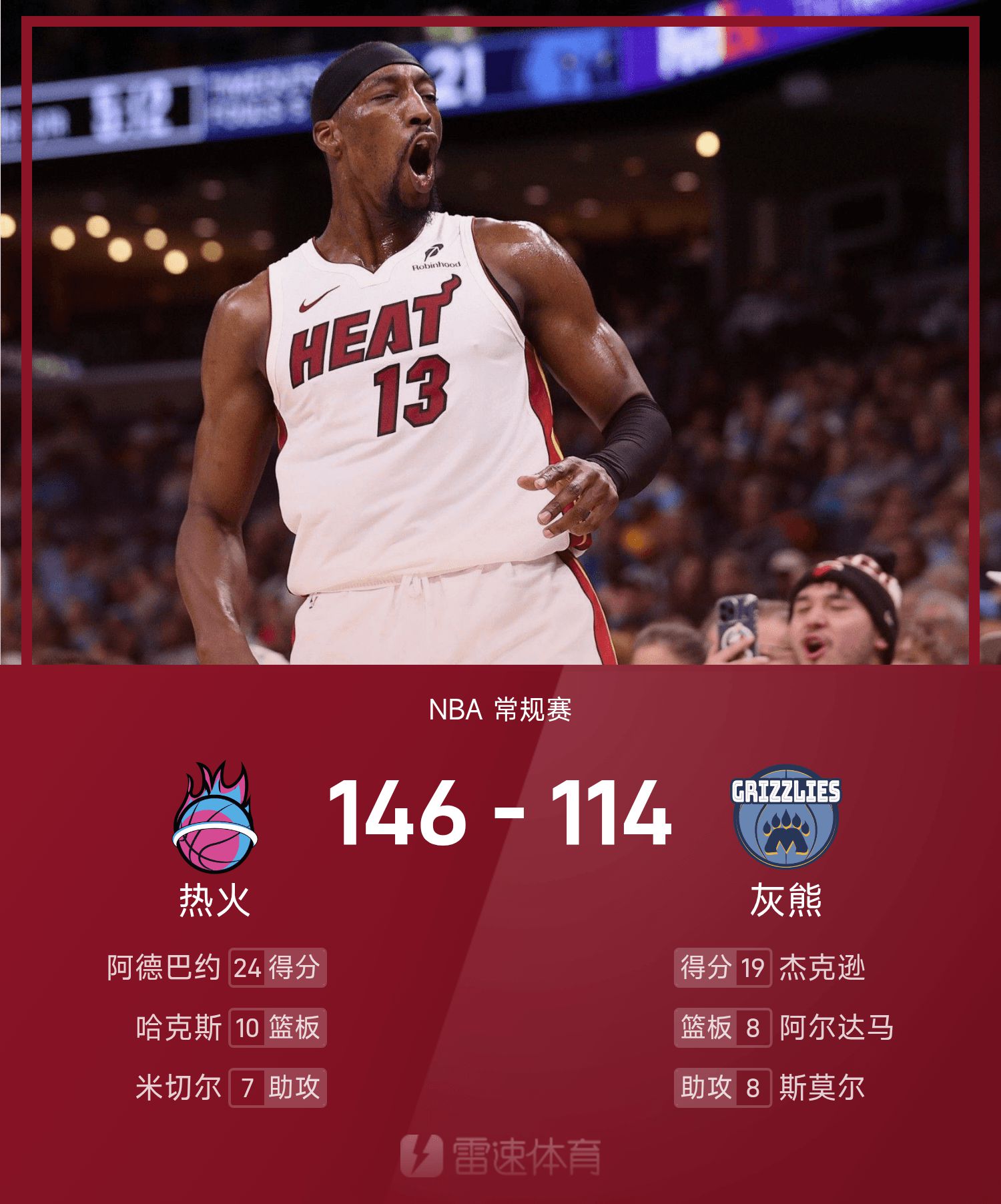 Adebayor thực hiện 8 trong số 19 cú sút và ghi được 24 điểm, 5 rebound và 4 kiến tạo.
