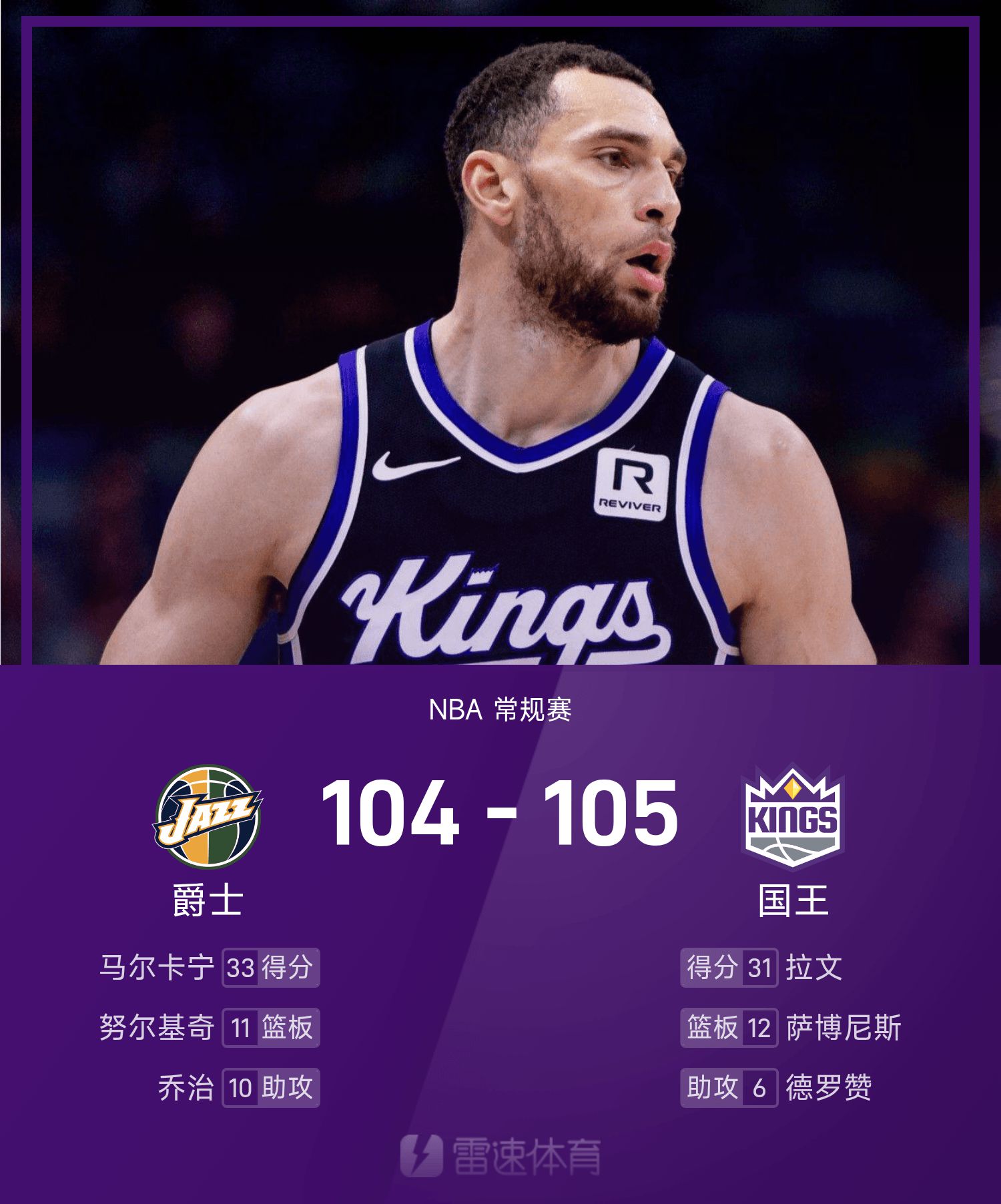 LaVine thực hiện 10 trong số 18 cú sút và ghi được 31 điểm, 2 rebound và 2 kiến tạo.