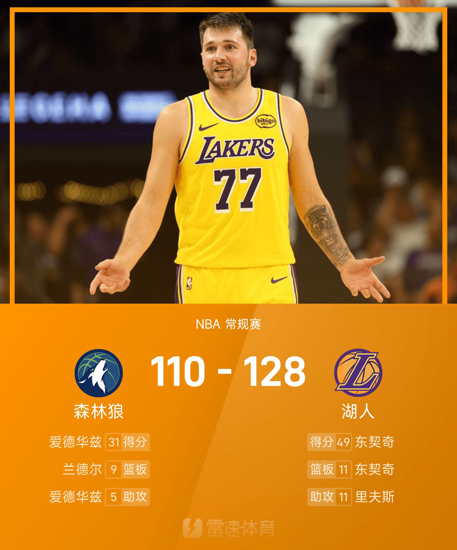 Doncic thực hiện 14 trong số 23 cú sút và ghi được 49 điểm, 11 rebound và 8 kiến tạo.
