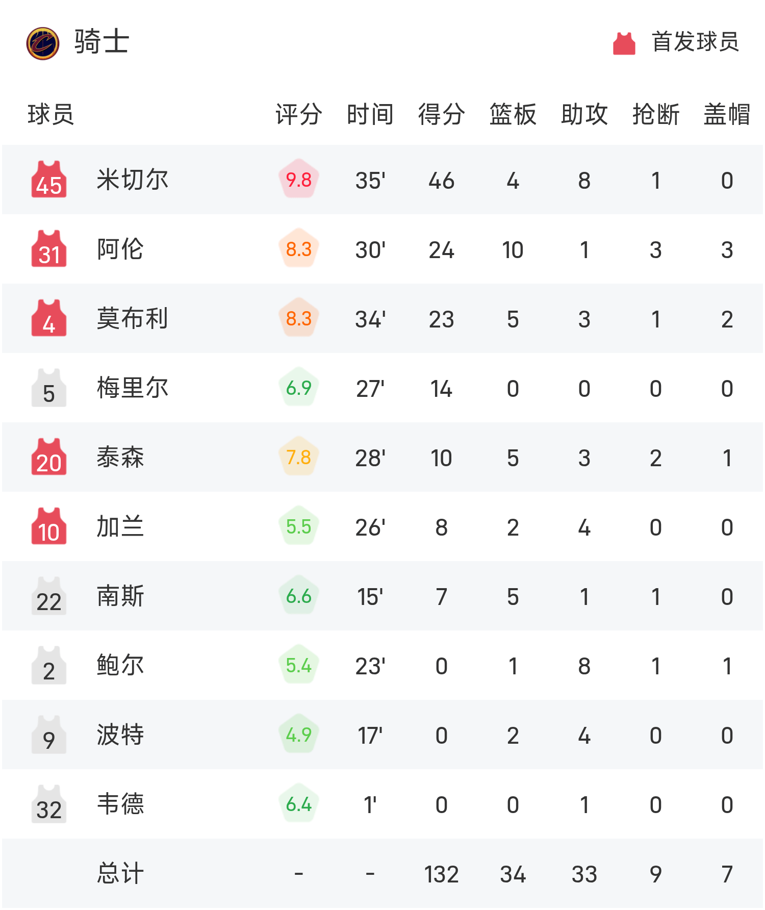 Mitchell đã ghi được 46 điểm cao nhất trận, 4 rebound và 8 kiến tạo, đưa Cavaliers đến chiến thắng.