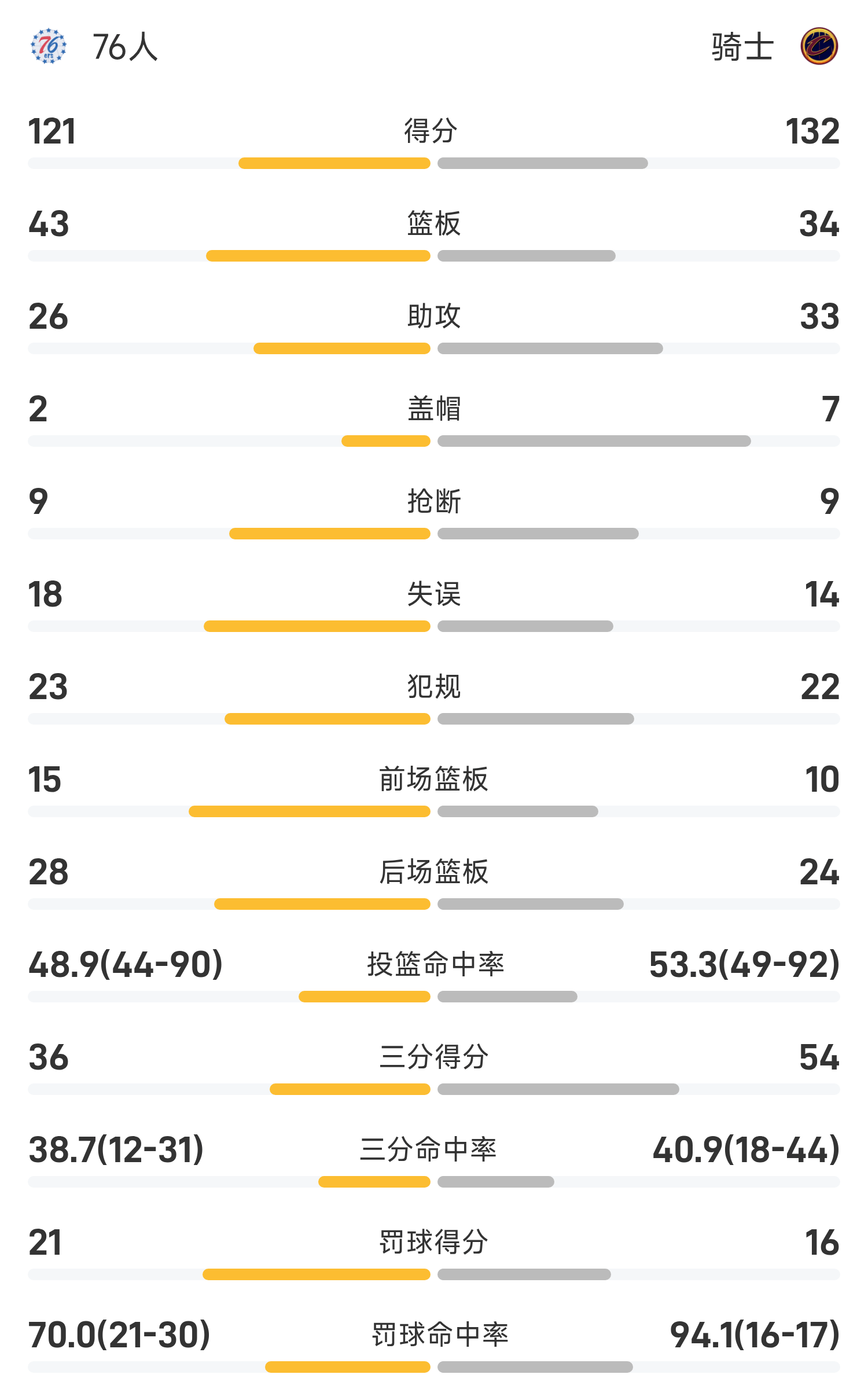 Sau khi hai bên giao chiến, Cavaliers đã đánh bại 76ers với tỷ số 132-121.