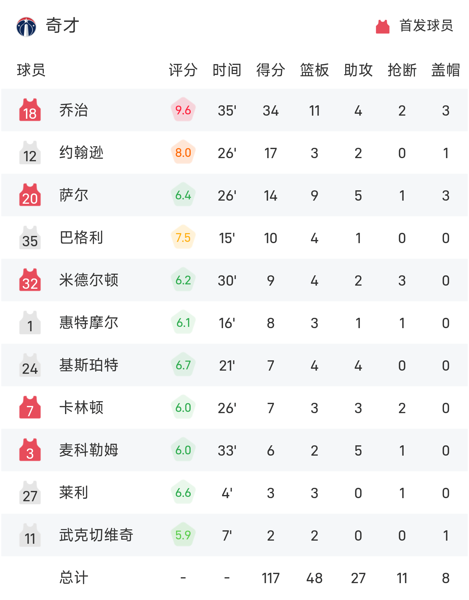 Báo cáo NBA: George 34 điểm và 11 rebound, Wizards đánh bại Mavericks 117-107