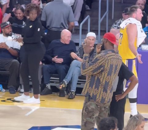 Hiệp đầu tiên của trận đấu đã kết thúc. Trong giờ giải lao, James bước vào sân và trao đổi một lúc với trọng tài.