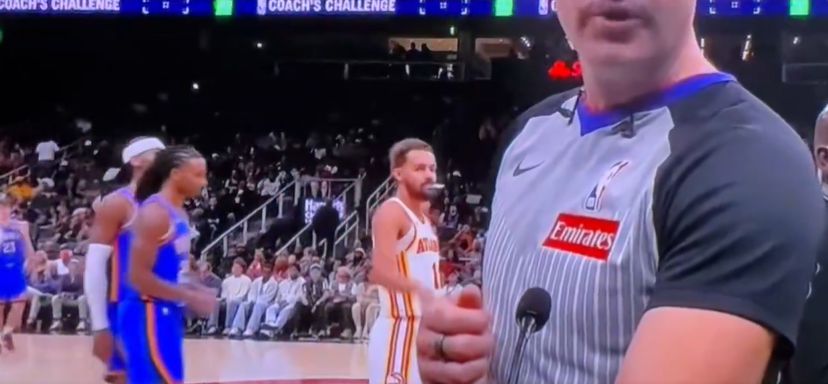 Truyền thông Mỹ đăng tải đoạn video: Trae Young giơ ngón tay cái ra phía sau trọng tài để bày tỏ sự không hài lòng khi Thunder thách thức trọng tài thay đổi quyết định.