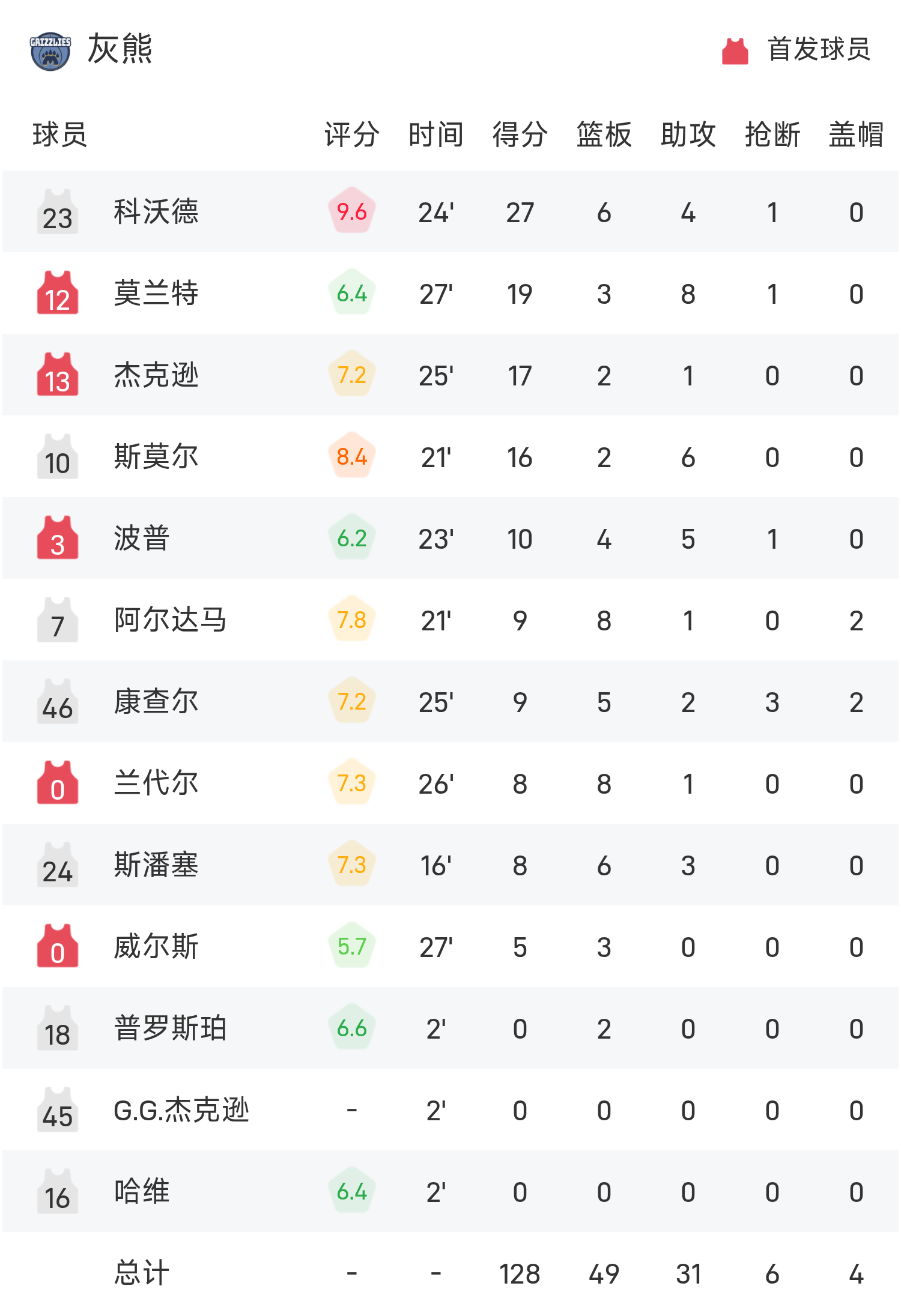 Coward đã ghi được 27 điểm cao nhất trận, 6 rebound và 4 kiến tạo, đưa Grizzlies đến chiến thắng.