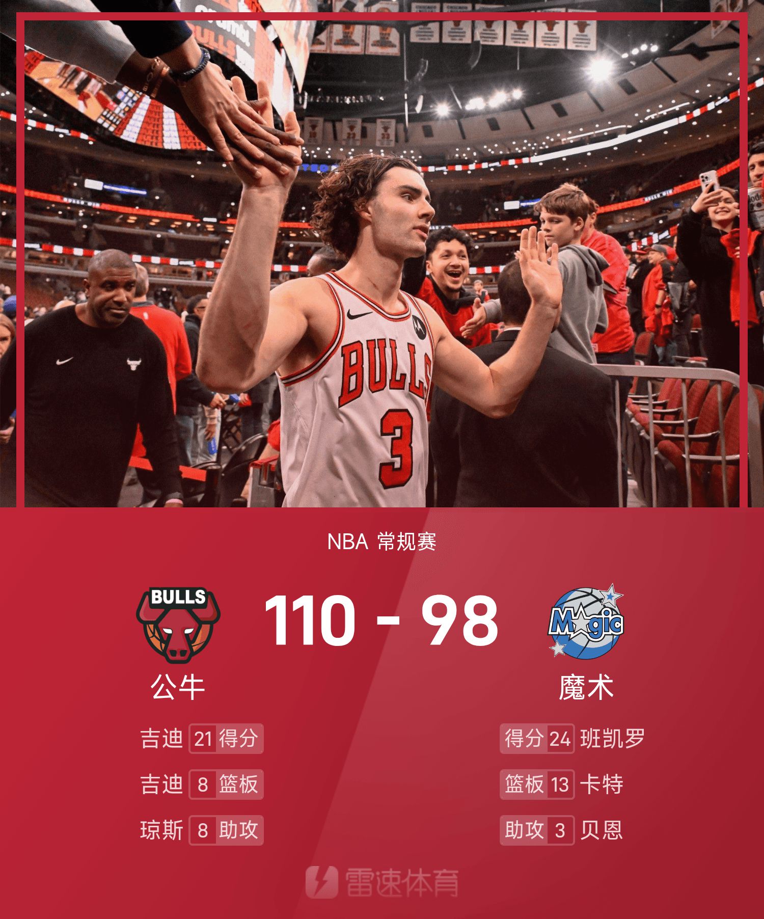 Người bảo vệ Bulls Gidi ghi được 21 điểm, 8 rebound và 3 kiến tạo, giúp đội đánh bại Magic trên đường và giành hai chiến thắng liên tiếp.