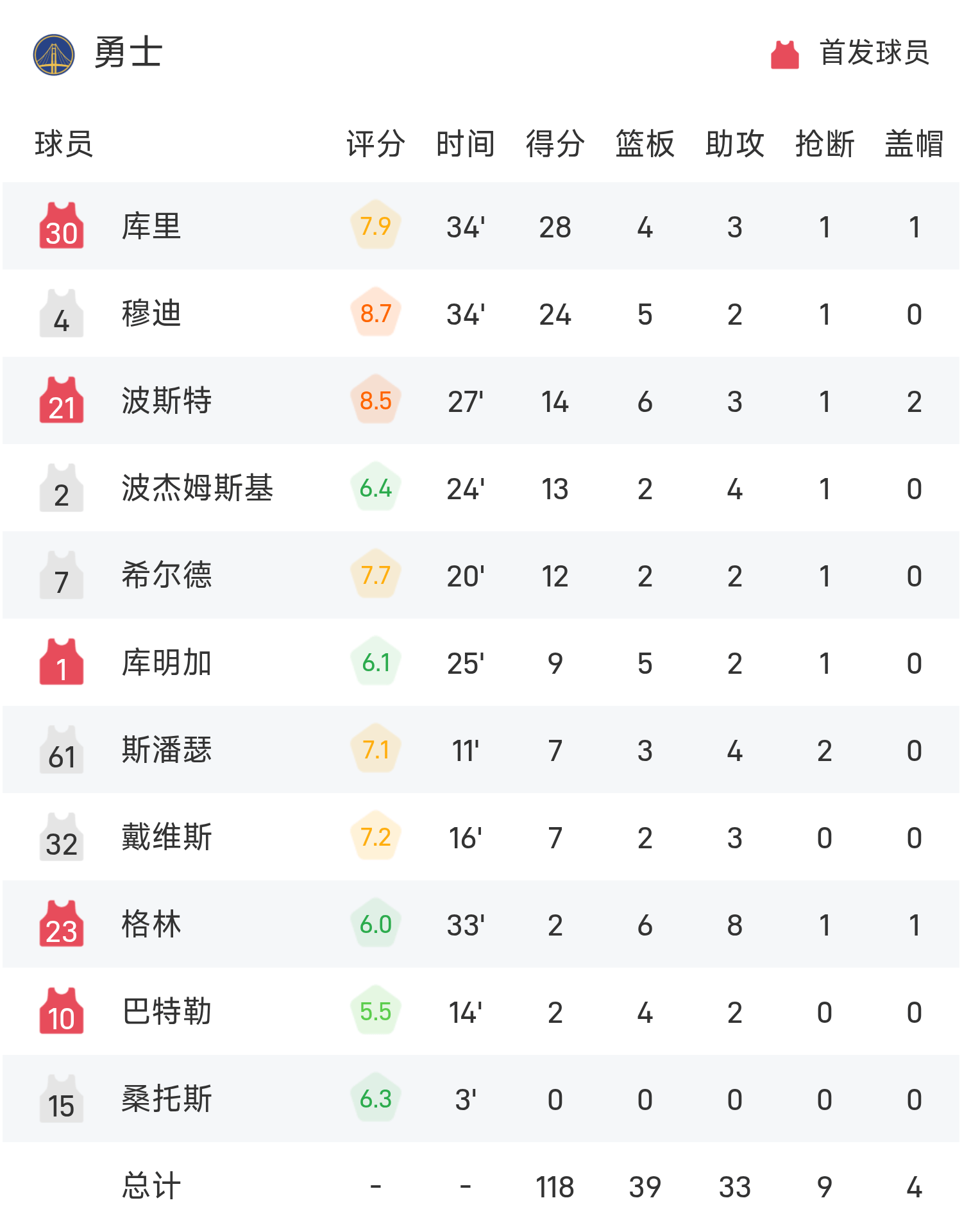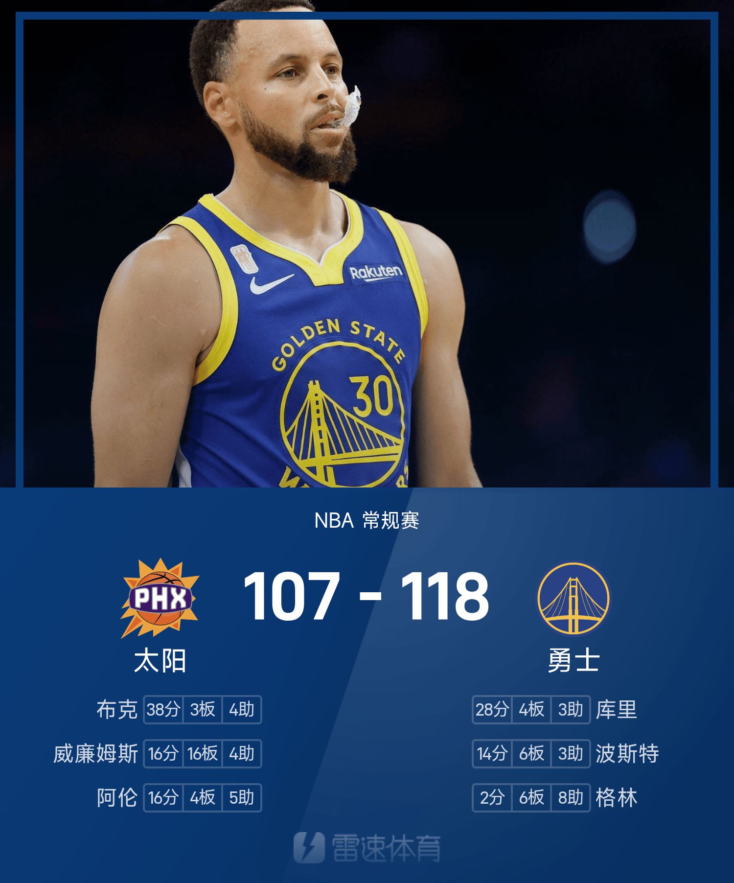 6686 Thể thao Tin tức ngày 05 tháng 11 Trong mùa giải NBA thường lệ 25/26, Warriors đối mặt với Suns. Kết thúc trận đấu, Warriors đánh bại Suns với tỷ số 118-107. Curry ghi được 28 điểm, 4 rebound và 3 kiến tạo để dẫn dắt đội giành chiến thắng, còn Booker ghi được 38 điểm, 3 rebound và 4 kiến tạo, cao nhất trận.