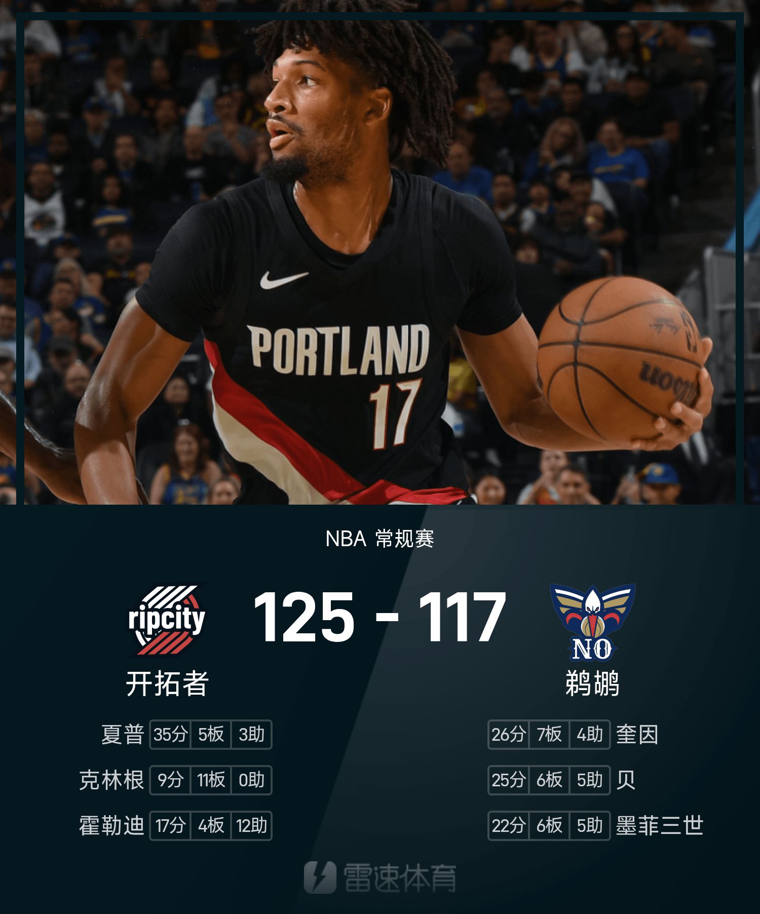 Blazers 125-117 Pelicans