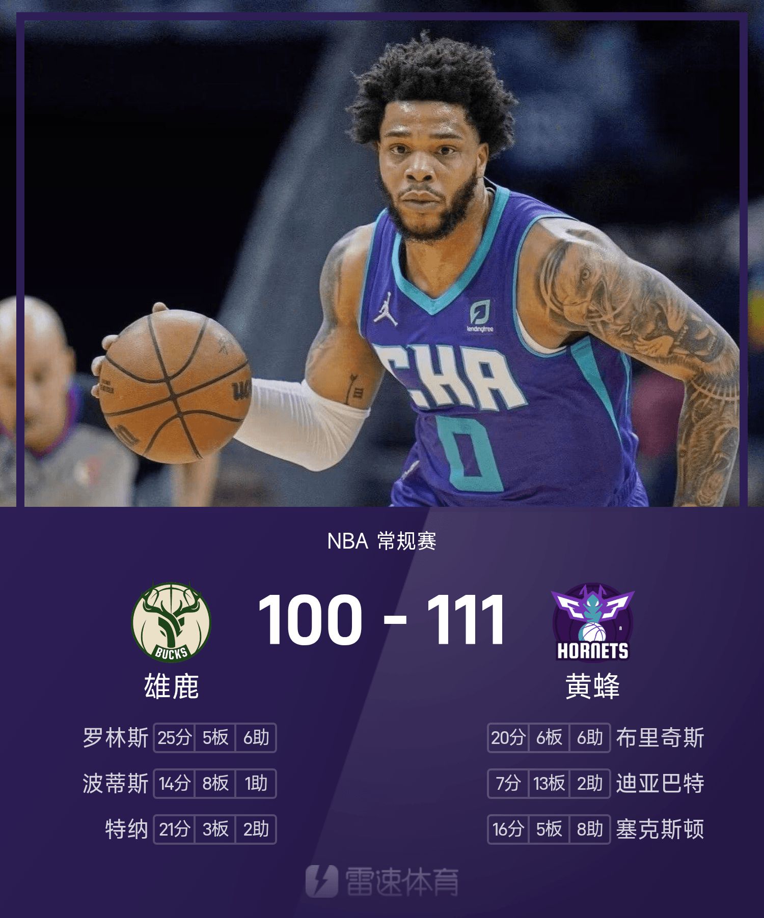 Bucks 100-111 Hornets