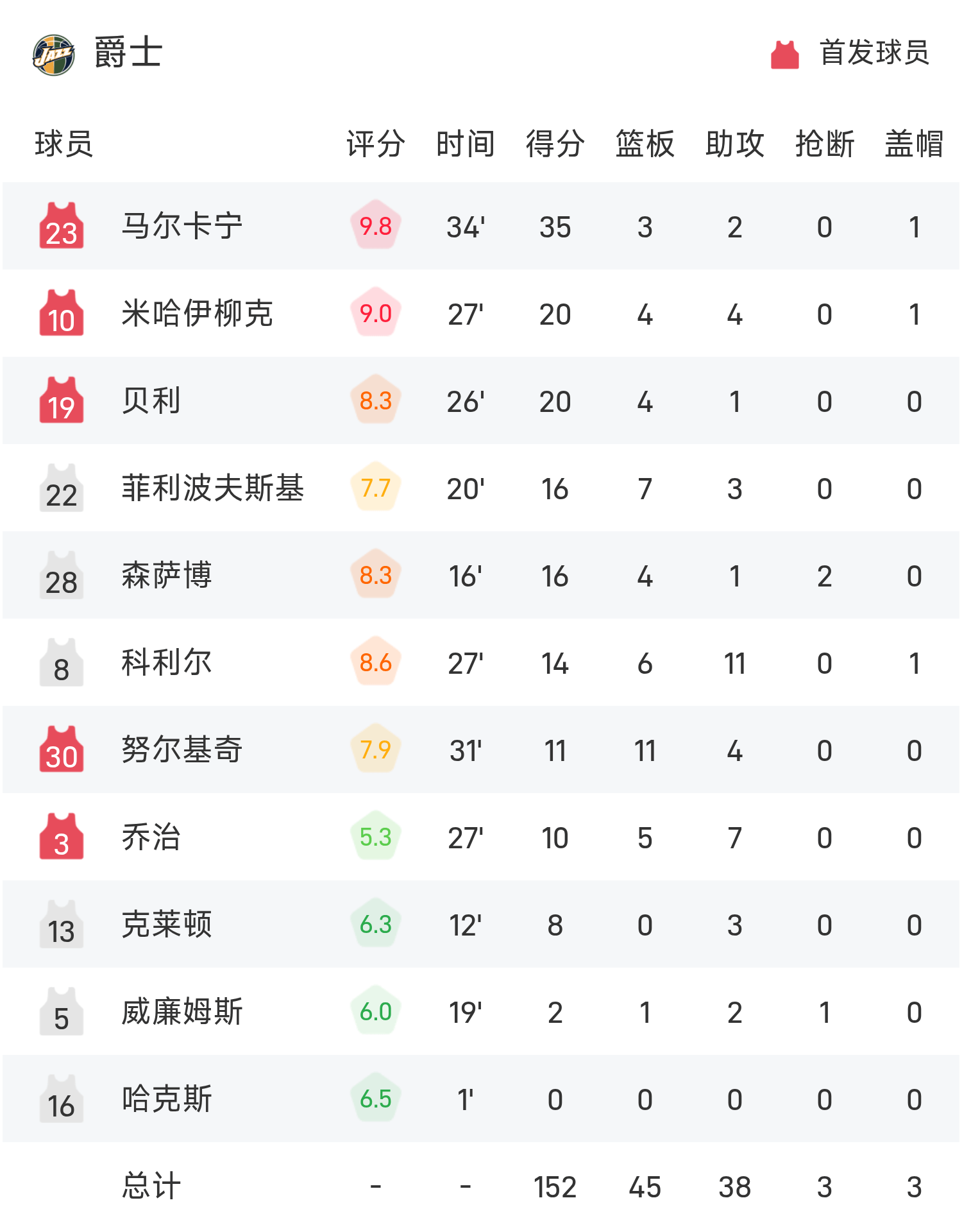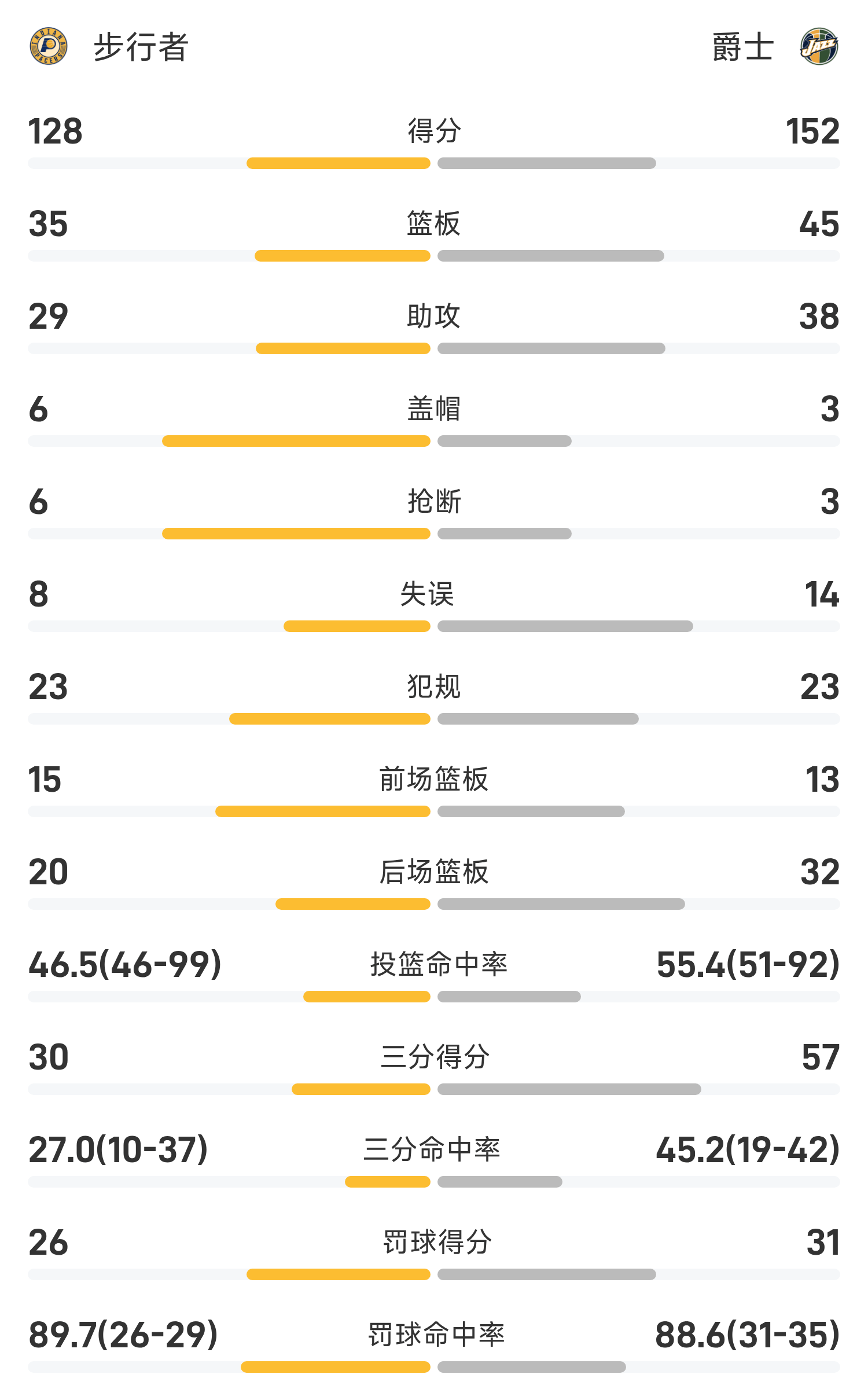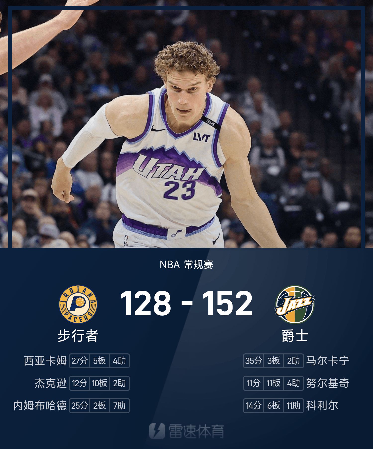 Cuối trận, Jazz đã đánh bại Pacers với tỷ số 152-128.