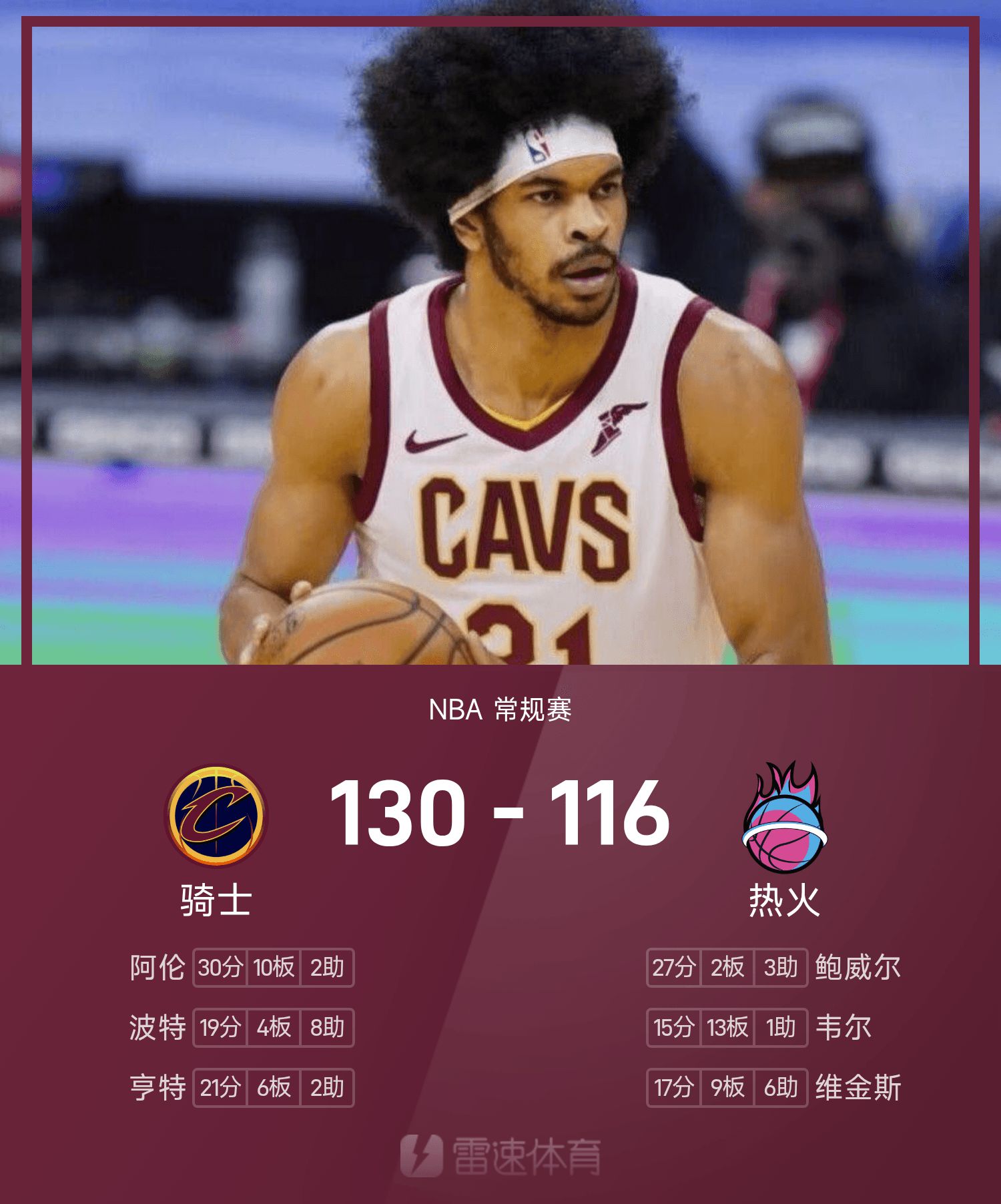 6686 Thể thao Tin tức ngày 13 tháng 11 Trong mùa giải NBA thường lệ 25/26, Heat thi đấu với Cavaliers. Kết thúc trận đấu, Heat thua Cavaliers với tỷ số 116-130. Allen đã ghi được 30 điểm cao nhất trận đấu, 10 rebound và 2 kiến tạo, đưa Cavaliers đến chiến thắng.